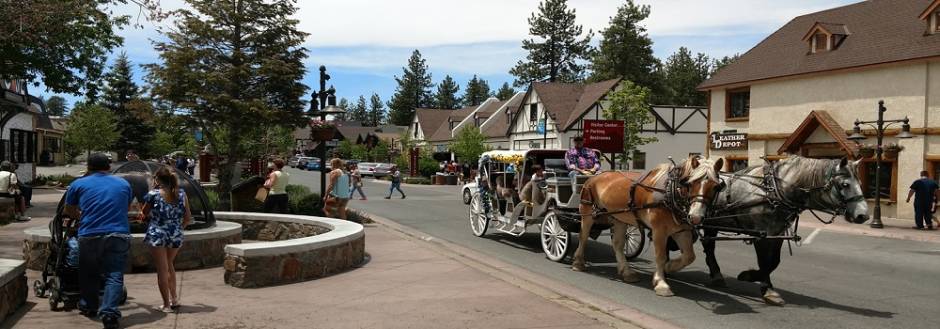 Pasea en la carroza halada por dos lindos caballos en el Big Bear Village.