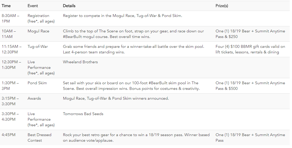 See full event info at https://www.bigbearmountainresort.com/winter/things-to-do/events/event-detail?url=bear-break-at-bear-mountain