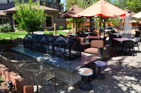 • Azteca Grill- Great big patio with umbrellas and heaters, so perfect for any time of the day or night. Also happens to be my favorite Mexican food on the mountain and they now have a full bar with a fresh Watermelon Margarita. Yum!