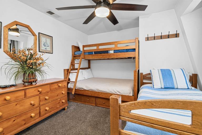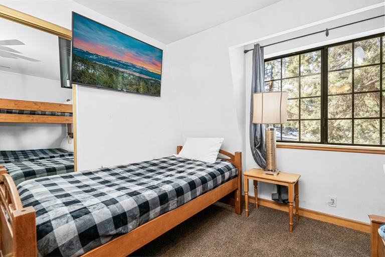 ROOMS & BEDS - 4 bedroom, 2 bath. Upstairs first bedroom has a queen bed and smart TV with cable. Upstairs second bedroom has a queen bed and smart TV with cable. Upstairs third bedroom has two twin beds and smart TV with cable. Upstairs fourth bedroom has two sets of queen/twin bunk beds and mounted smart TV with cable.