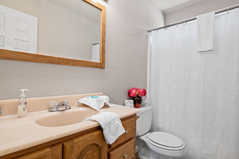 ROOMS & BEDS - 2 bedroom, 2 bath. Upstairs first bedroom has a queen bed and TV. Upstairs second bedroom has a queen bed. Extra blankets and pillows are available.