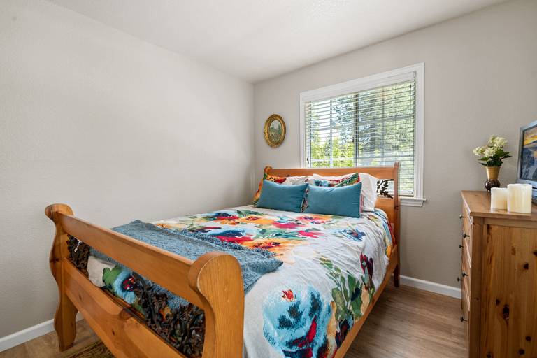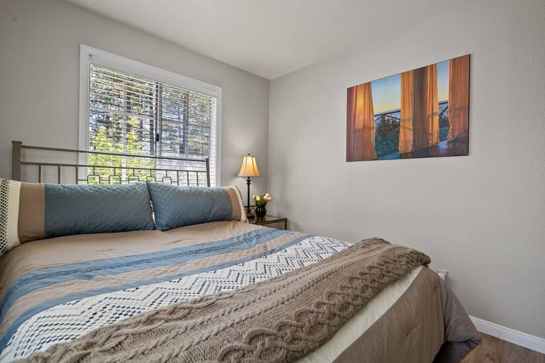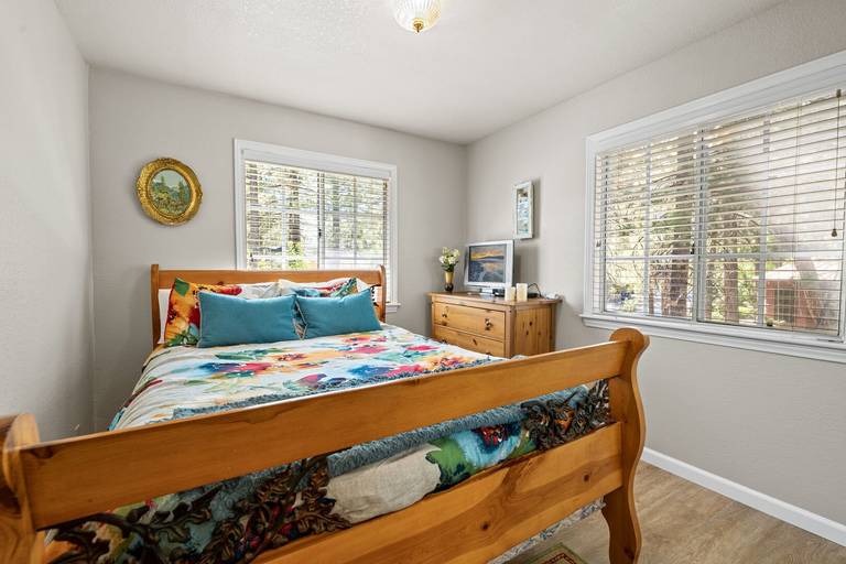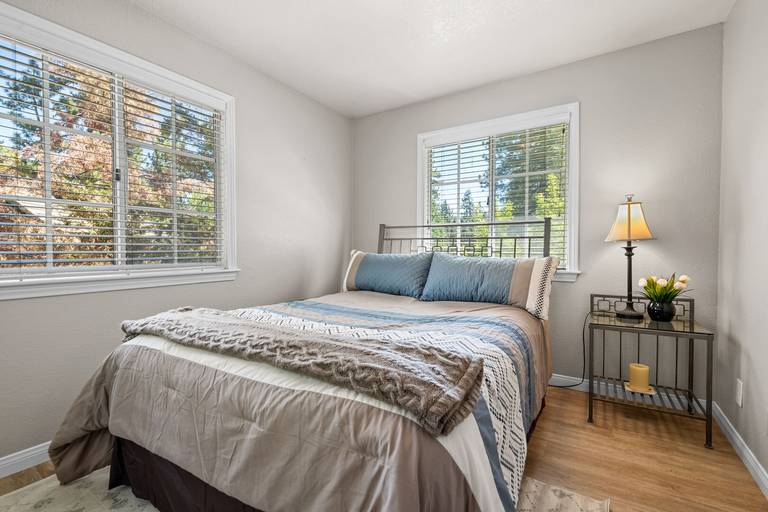 Reviewed on 2023-12-22 by JeffreyJust about the cleanest rental ever. Convenient in the big bear community. Neighborhood seems quiet. Easy to get to. Good parking spaces. It has all the amenities one needs. Would give it 5 stars, but the beds are not queens but doubles. The heater, downstairs, is effective but noisy enough you have to turn the TV volume to max to hear it when the heater is running. In winter it takes awhile before the upstairs warms up in the beginning, but fine after that. The place was comfortable and met the needs of four adults just fine. I would rent here again if I was okay with double beds.