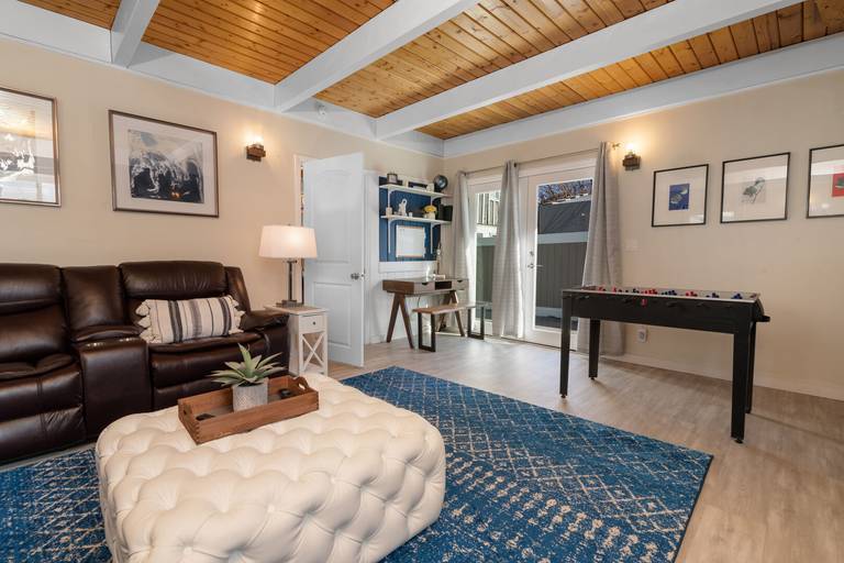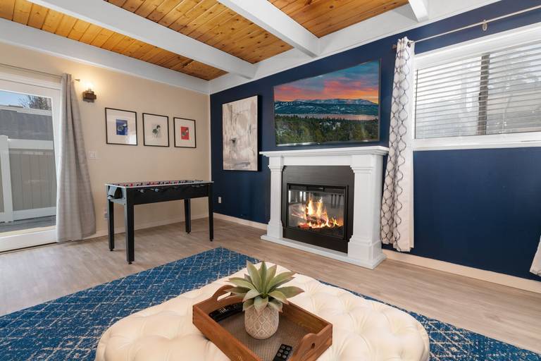 AMENITIES - Family room with foosball table and arcade machine. Board games and card games. Smart TVs with streaming apps, Chromecast, and complimentary Wi-Fi. Relax near the cozy wood burning fireplace. Laundry area with stackable washer/dryer.
