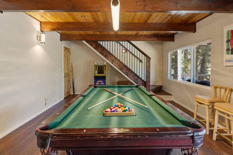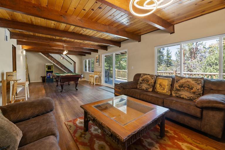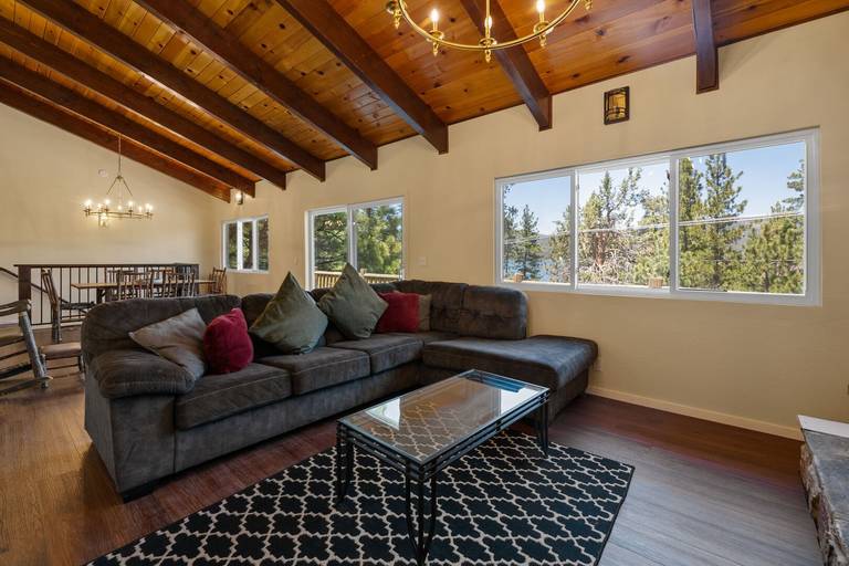 Bare Necessities is perfect for everyone. Recently updated with new floors, a fresh kitchen, modern bathrooms, and enhanced lighting, this spacious home offers everything you need for a wonderful stay. Located in a beautiful and desirable area of Big Bear, close to the lake and village, it provides the ideal setting for your getaway. Enjoy the comfort of one of the few homes in Big Bear equipped with A/C, ensuring a pleasant stay year-round. With its combination of modern amenities and prime location, you’ll never want to leave.