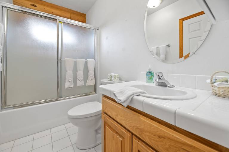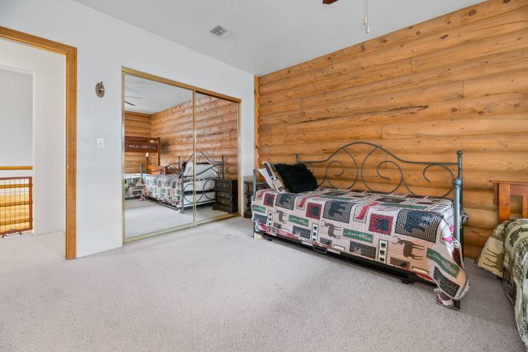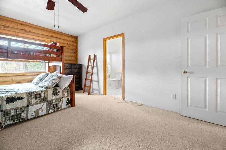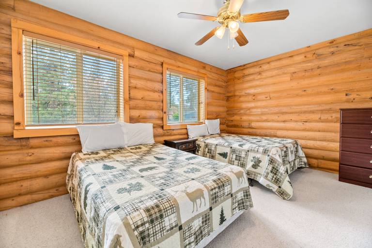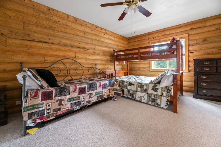 ROOMS & BEDS - 4 bedroom, 3 bath. Upstairs master bedroom has a king bed and private bath. Upstairs second bedroom has a queen bed. Upstairs third bedroom has two double beds. Upstairs fourth bedroom has a queen/twin bunk bed, twin trundle bed, and private bathroom. Extra blankets and pillows are available.