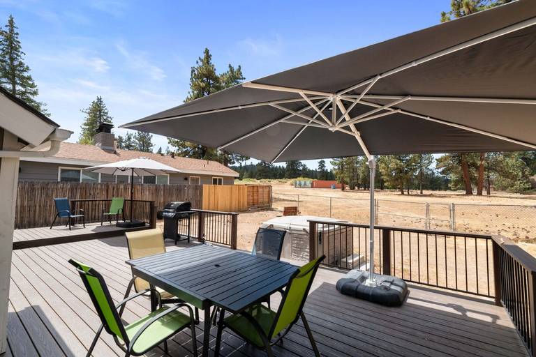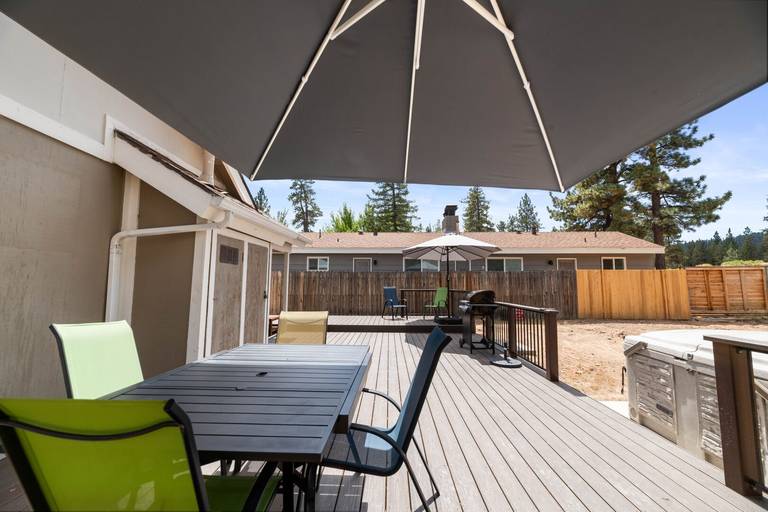 OUTDOORS - Hot tub and gas barbecue. Enjoy the large back deck and fenced yard! Outdoor activities include a horseshoe pit.