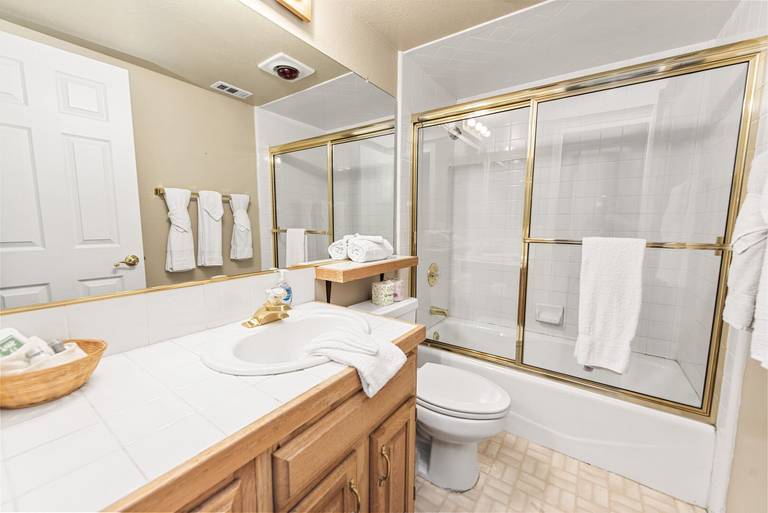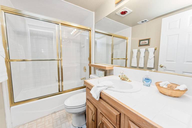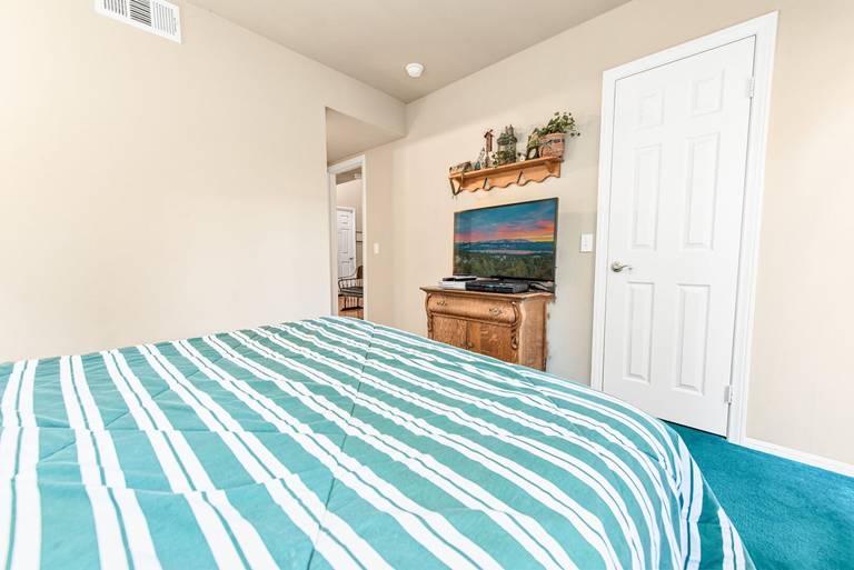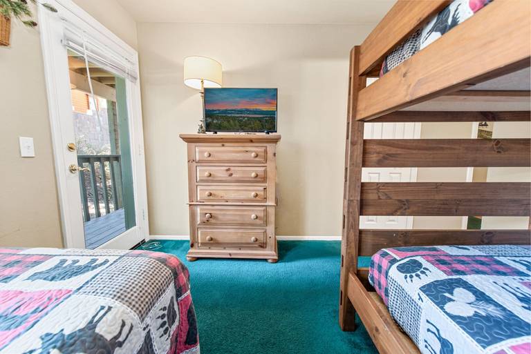 ROOMS & BEDS - 2 bedroom, 2.5 bath. Master bedroom has a queen bed, TV, private bath, and deck. Second bedroom has twin bunk beds, twin bed, TV, and private bath. Living room has a sleeper sofa. Extra blankets and pillows are available.