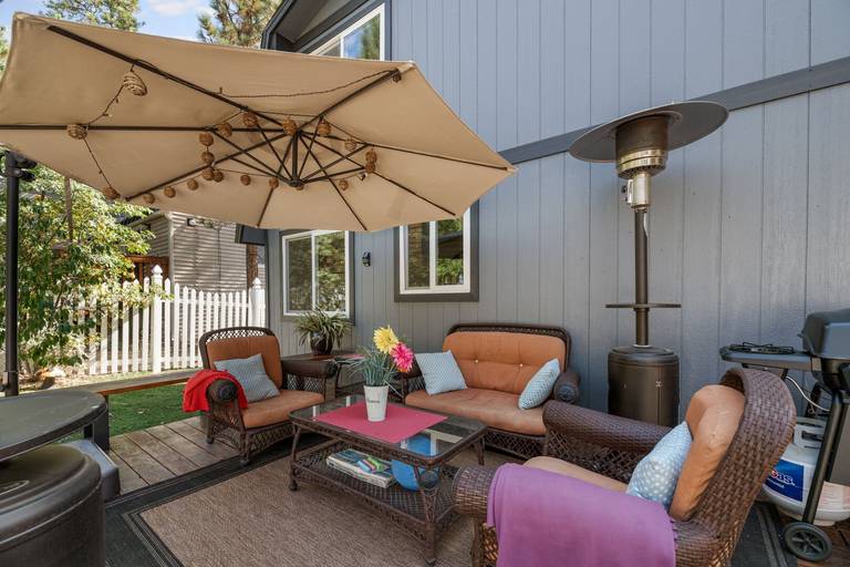 OUTDOORS - Patio furniture, benches, gas barbecue, fire pit, porch swing, and more! Enjoy the multiple front decks and large fenced yard with string lights and heater! Outdoor activities include a horseshoe pit.