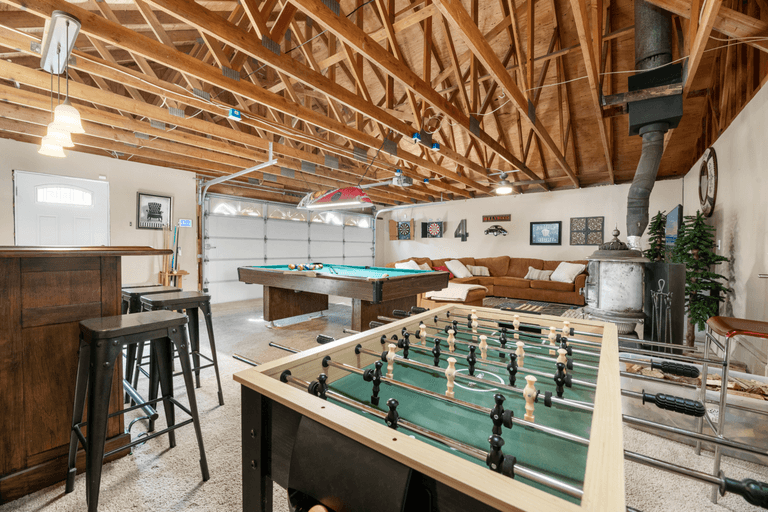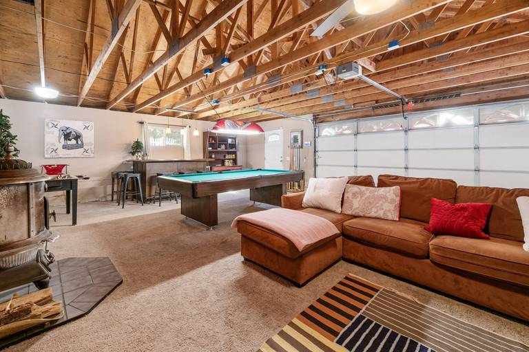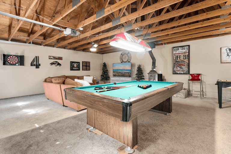 AMENITIES - Game room with bar, pool table, foosball table, and a fireplace! Smart TVs, streaming apps along with fast WiFi, board games, and card games. Relax near the cozy wood burning fireplace. Laundry area with side-by-side washer/dryer.