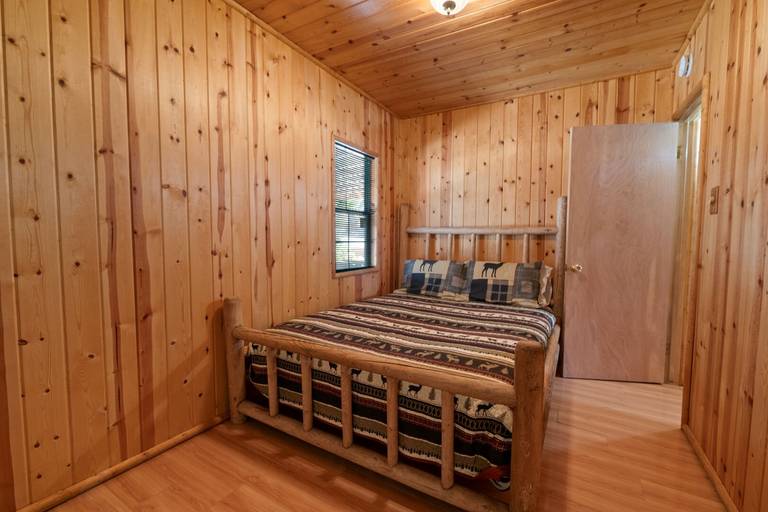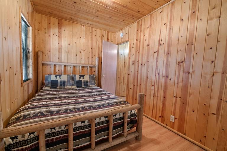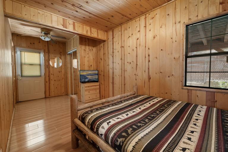 ROOMS & BEDS - 3 bedroom, 2.5 bath. Upstairs master bedroom/loft has a queen bed, TV, and half bath. Downstairs second bedroom has a double bed and TV. Downstairs third bedroom has a double bed and TV. Extra blankets and pillows are available.