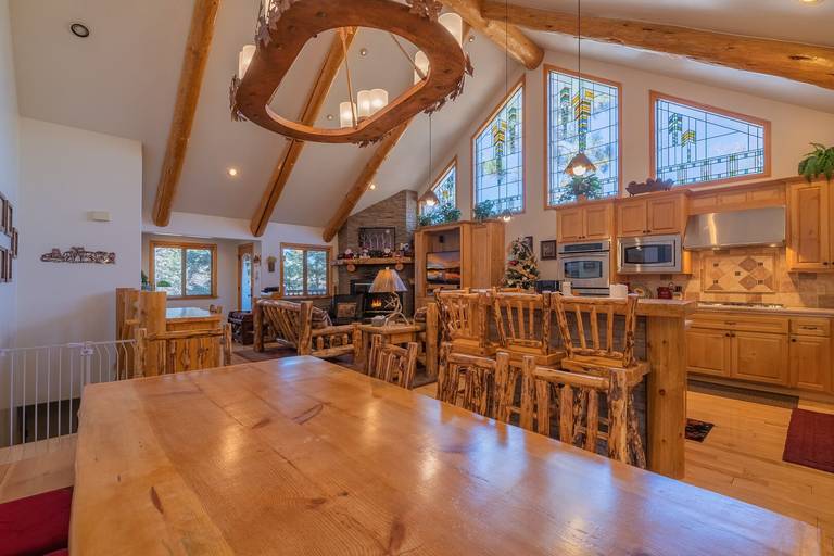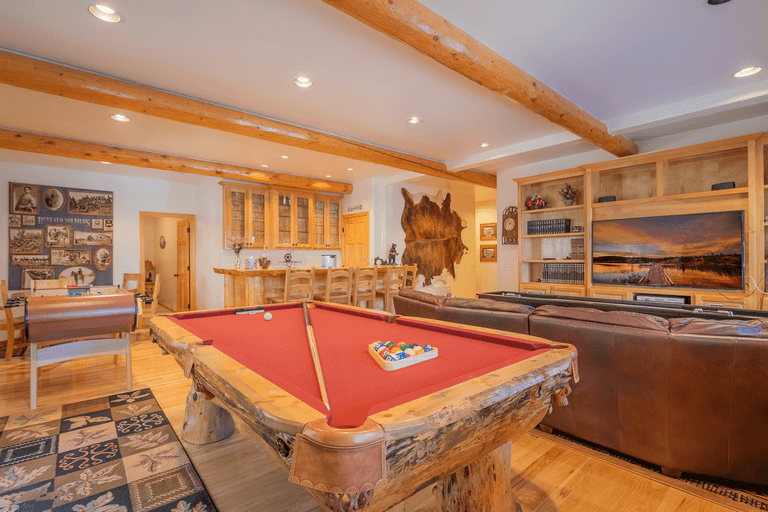 LIVING SPACE - Spacious 2400+ sq ft home with living room, dining table, bar seating, and decks with forest views. Massive great room for entertaining, as well as an incredible family/game room with a wet bar.