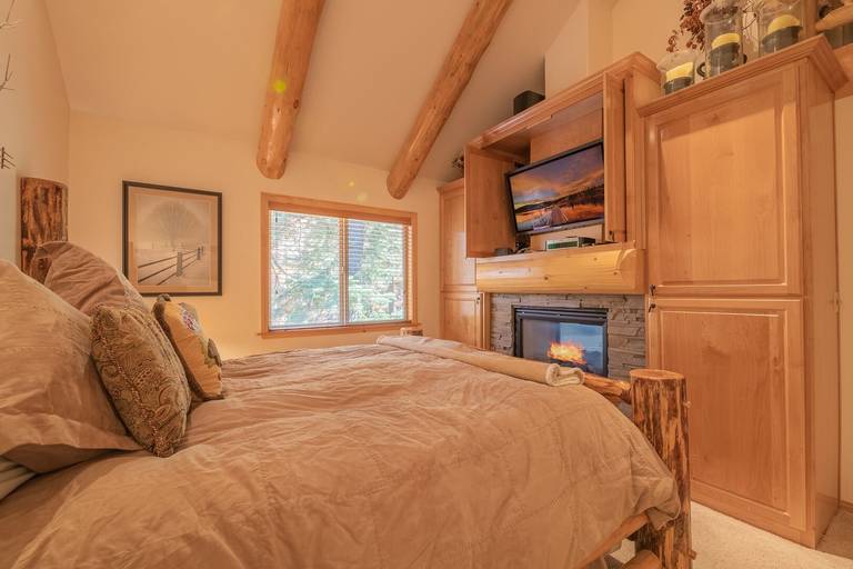 ROOMS & BEDS - Entry level master bedroom has a king bed, TV, DVD player, fireplace and jet tub. Downstairs second bedroom has a queen bed and TV. Downstairs third bedroom has a queen bed. Downstairs fourth bedroom has a queen bed, twin bed, trundle, and TV.