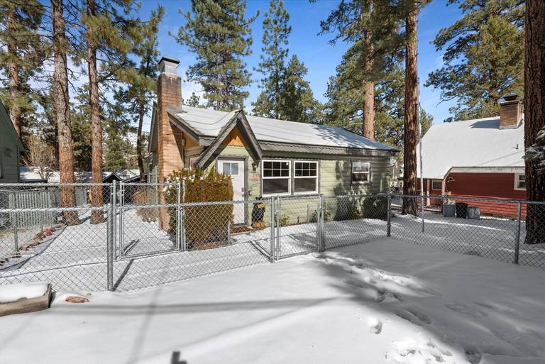 Snow covered Big Bear Cool Cabins Bear's Booth, front [22]