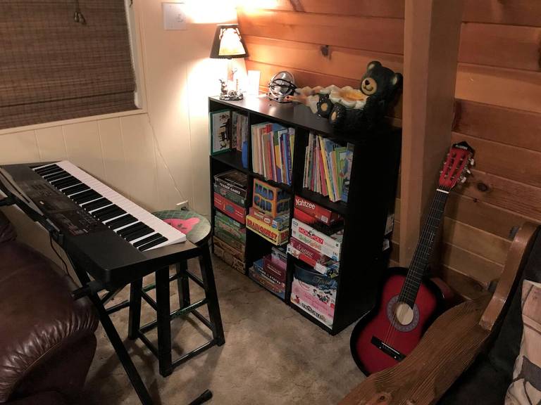 AMENITIES - Smart TVs with cable, streaming apps along with fast WiFi, board games, and card games. Relax near the cozy wood burning fireplace with family games and toys, a keyboard, and a guitar.