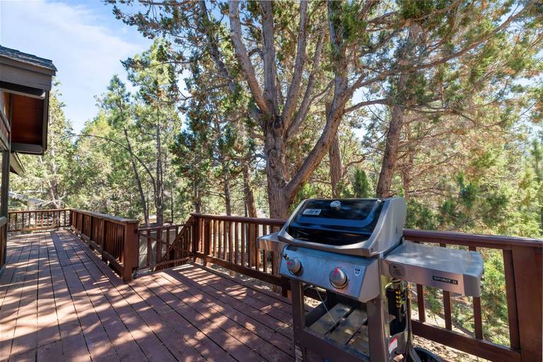 OUTDOORS - Three outdoor decks with patio furniture, a gas BBQ, and ski slope views. Take in the stunning views of the mountain and trees surrounding the property while you relax on one of the decks.