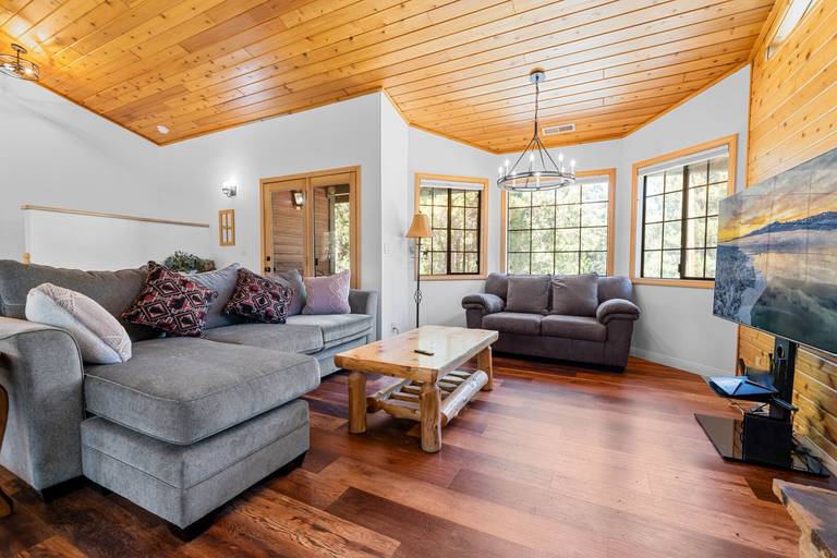 Welcome to Bigfoot's Hideout, a stunning two-story home located in the desired Fox Farm area of Big Bear. This immaculate mountain home boasts warmth, character, and mountain views that will leave you speechless. With plenty of trees and natural landscaping on a large lot, Bigfoot's Hideout provides a peaceful retreat for your Big Bear vacation.