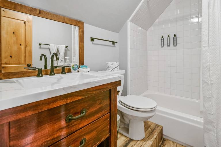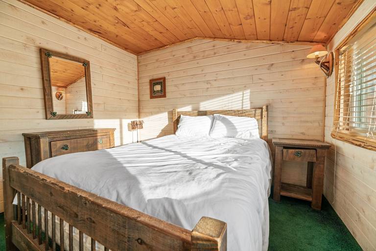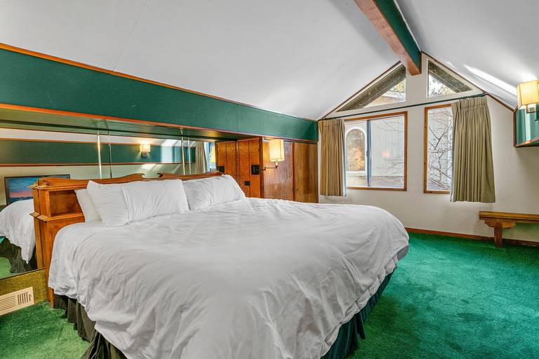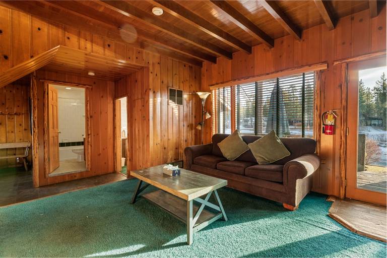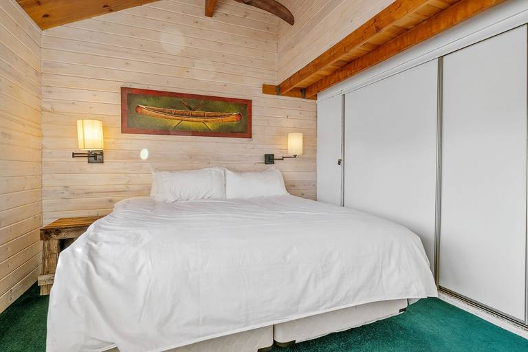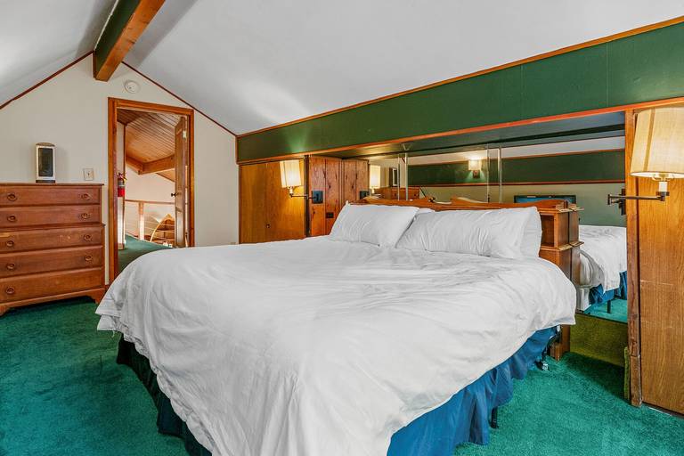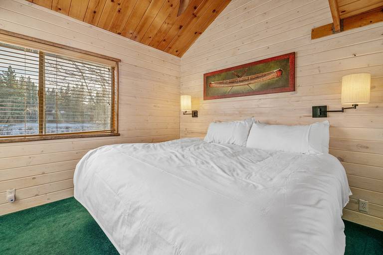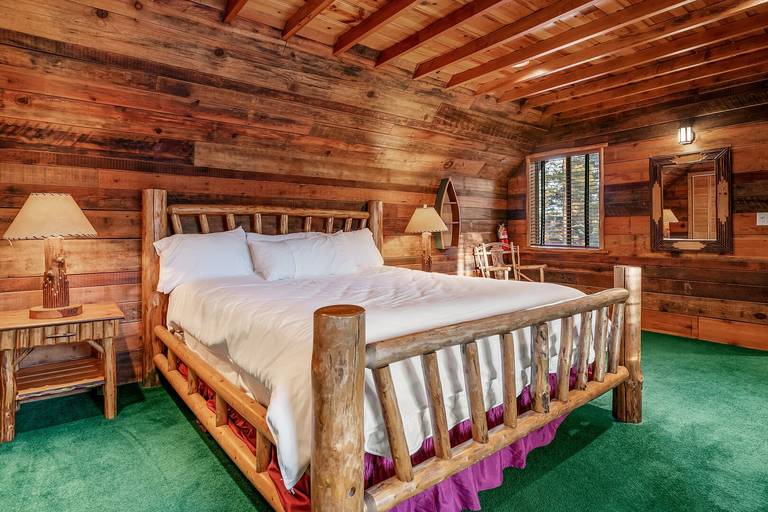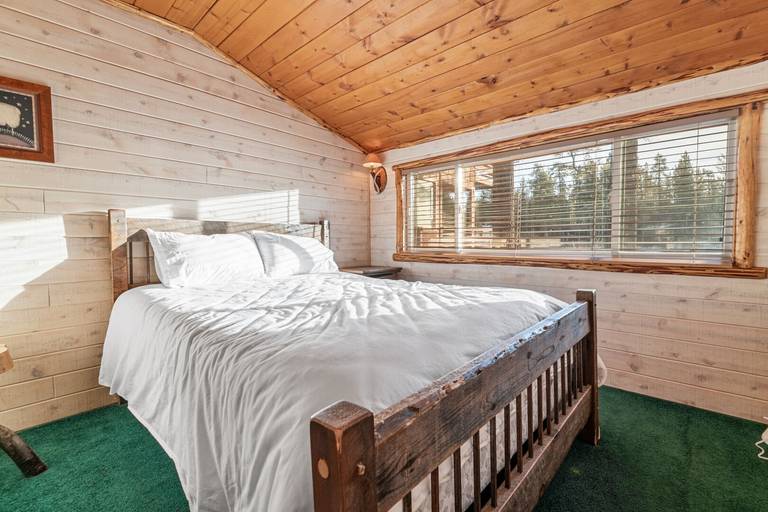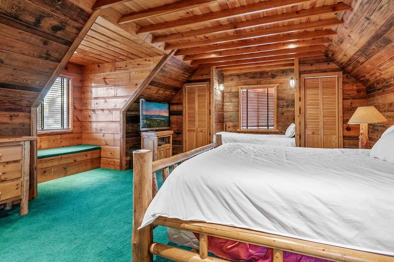 Reviewed on 2024-02-07 by JaimeThis cabin was a new experience for us since it is connected to the lake. The layout was different than expected there are two bedrooms upstairs that have a bathroom across the entrance but the bedrooms are on separate sides of the cabin so they are not connected. On the first floor two bedrooms are connected together (the twin and queen bedroom) and have the same entrance. While the last bedroom is near the entrance of the cabin next to the third bathroom. It kind of felt like the cabin was split one side with the pool table and the other with the kitchen. Overall it was a great rustic cabin.