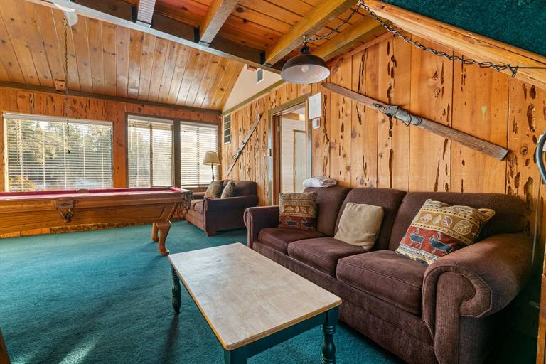 AMENITIES - Game room with pool table, board games, and card games. Cable TVs, Roku along with fast WiFi. Enjoy the jetted tub after a long day of exploring Big Bear. Relax near the cozy wood burning fireplace.