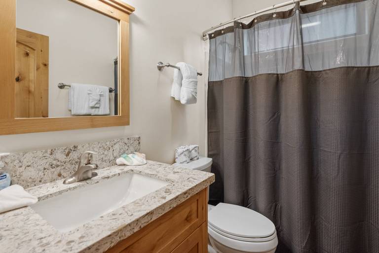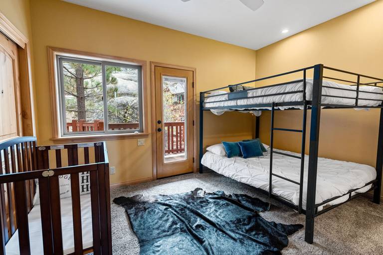 ROOMS & BEDS - 3 bedroom, 3.5 bath. Upstairs first master bedroom has a king bed, double bed, gas log fireplace, smart TV with cable, and private bath with jet tub and glass enclosed tiled shower with bench. Downstairs second master bedroom has a king bed, smart TV with cable, private bath, and deck access. Downstairs third bedroom has a double/double bunk bed, smart TV with cable, private bath, and deck access. Extra blankets and pillows are available.