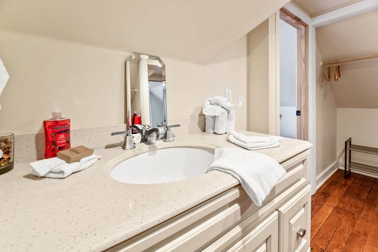 ROOMS & BEDS - First bedroom has a double bed. Second bedroom has a double murphy bed and bath. Loft has four twin beds. Living room has a sleeper sofa.