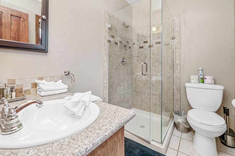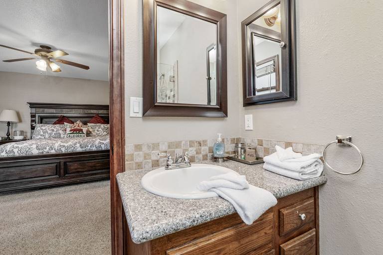 ROOMS & BEDS - 3 bedroom, 2.5 bath. Master bedroom has a king bed and private bathroom. Second bedroom has a twin/full bunk bed. Third bedroom has a queen bed. Extra blankets and pillows are available.