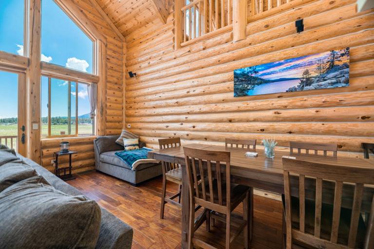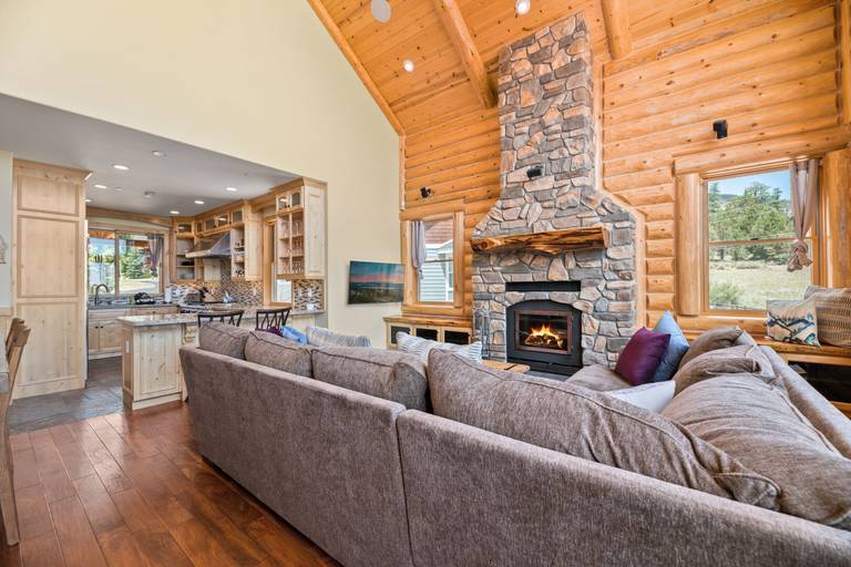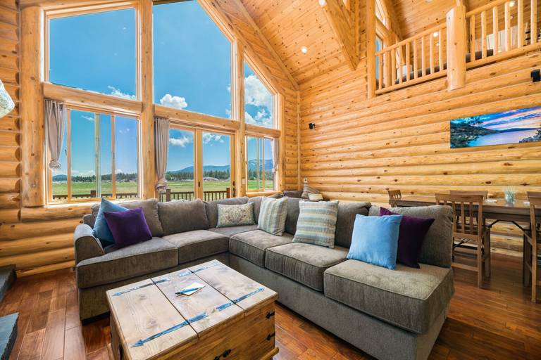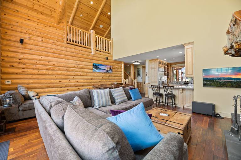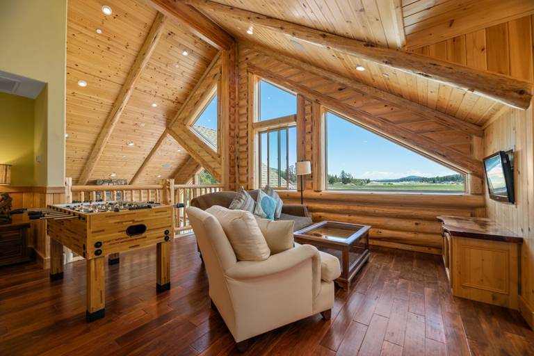 Newly remodeled log style home with luxury flare. A spacious two-story property with beautiful cathedral wood ceilings and large picture windows with gorgeous views. Located in the upscale Bear Loop community, this cabin is in a picturesque location while still being close to local hotspots. Nearby the lake, grocery stores, Alpine Pedal Path, and Snow Play. A short drive to the Village, ski resorts, Alpine Zoo, golf course, and more!
