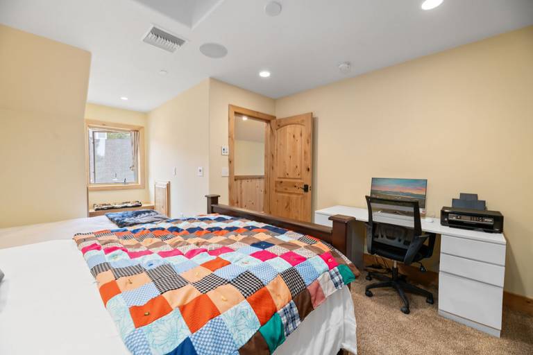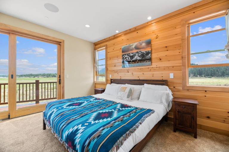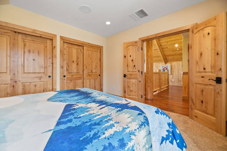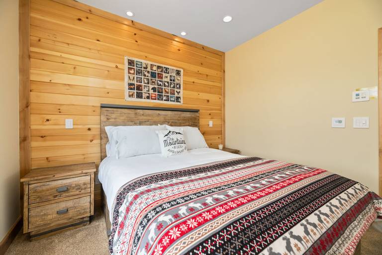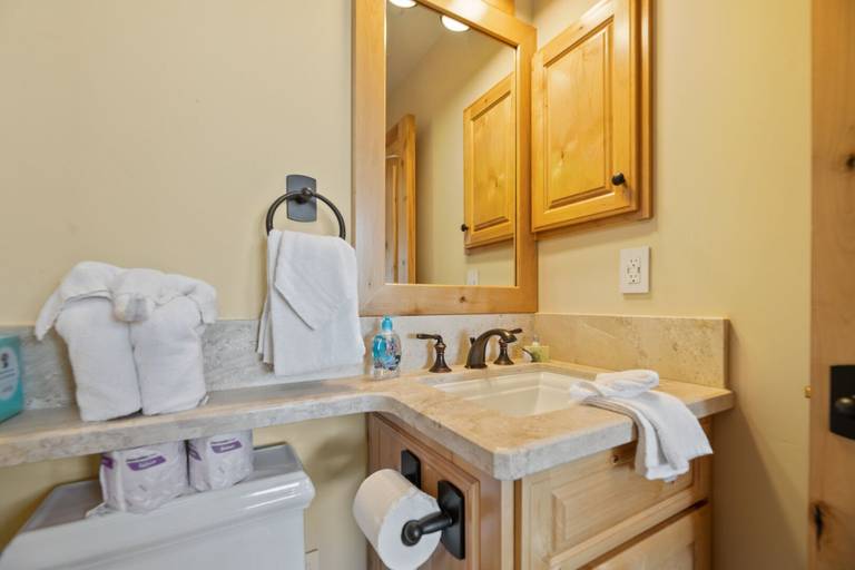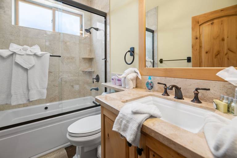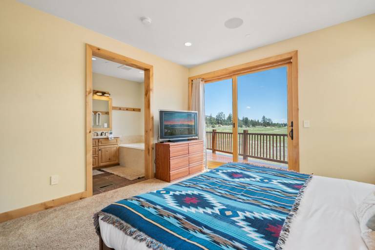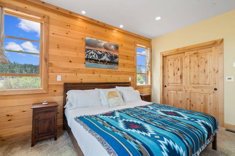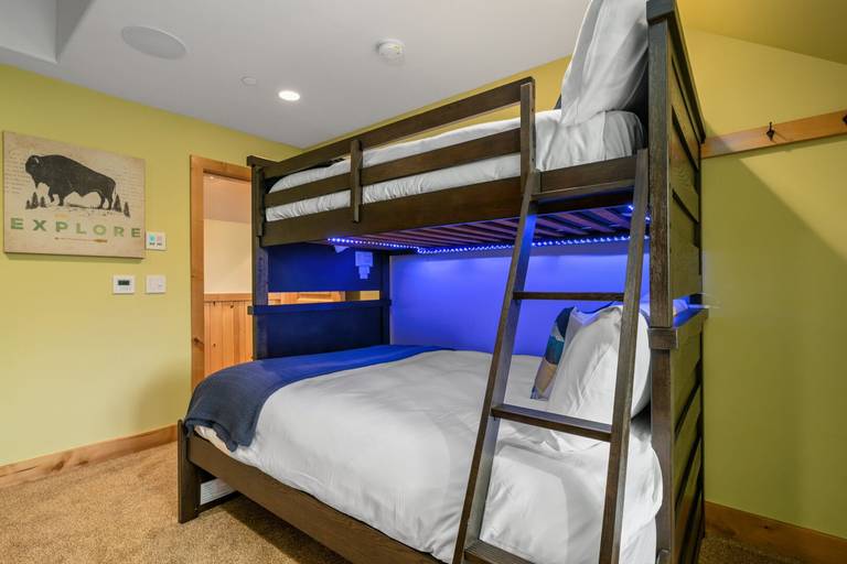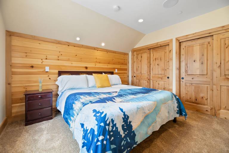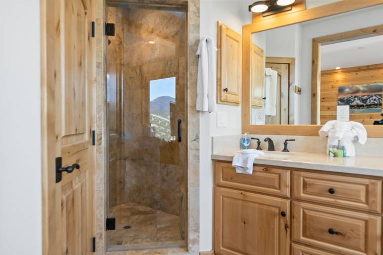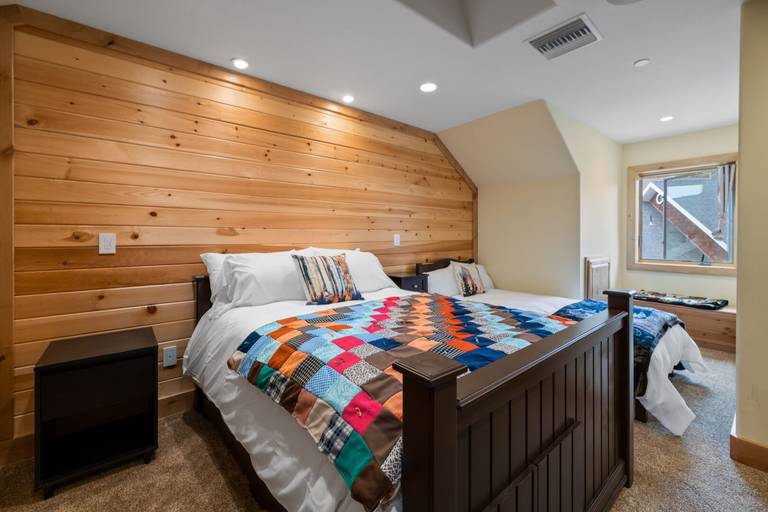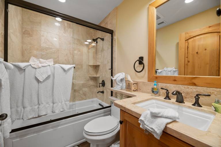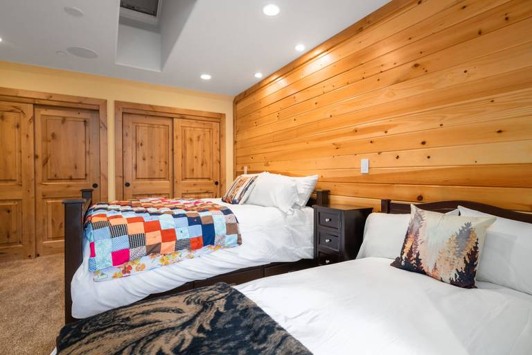 ROOMS & BEDS - 5 bedroom, 3.5 bath. Downstairs master bedroom has a king bed, TV, deck, and bathroom with jet tub and steam shower. Downstairs second bedroom has a king bed. Upstairs third bedroom has a queen bed. Upstairs fourth bedroom has a double/twin bunk bed. Upstairs fifth bedroom has a double bed and twin bed. Extra blankets and pillows are available.
