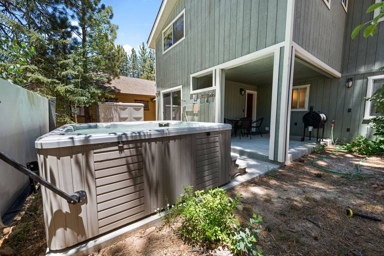 OUTDOORS - Enjoy the private hot tub in the back yard. Large upper front deck with patio furniture, and gas barbecue.