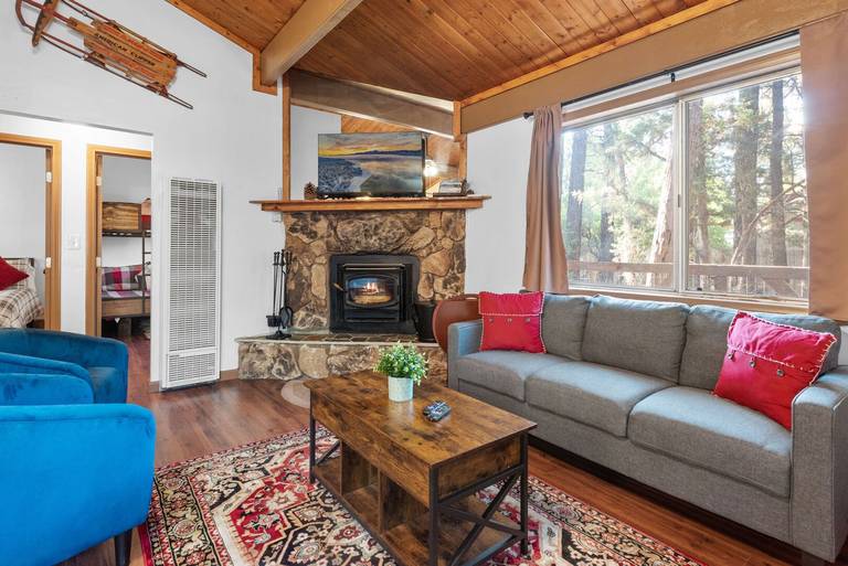 Nestled in the quiet neighborhood of Sugarloaf and within walking distance to Kallan's Bar and Grill, Sugarloaf Park, skate park, and hiking trails. Just a short drive to Snow Play, ski resorts, the Village, and more! This classic cabin is perfect for small families and friends looking to enjoy life in Big Bear!