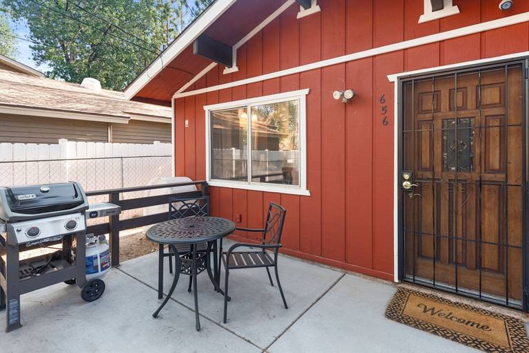 OUTDOORS - Patio furniture and gas barbecue. Enjoy a cup of coffee and brisk mountain air on the front deck!
