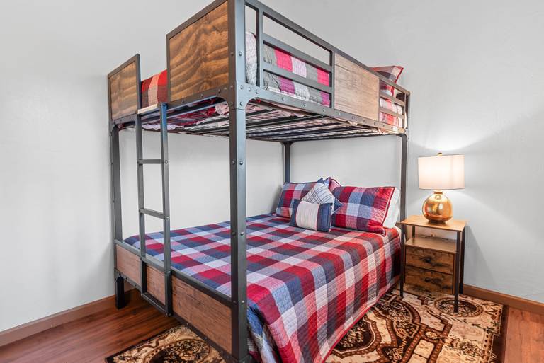 ROOMS & BEDS - 2 bedroom, 1 bath. First bedroom has a queen bed. Second bedroom has a bunkbed. Extra blankets and pillows are available.