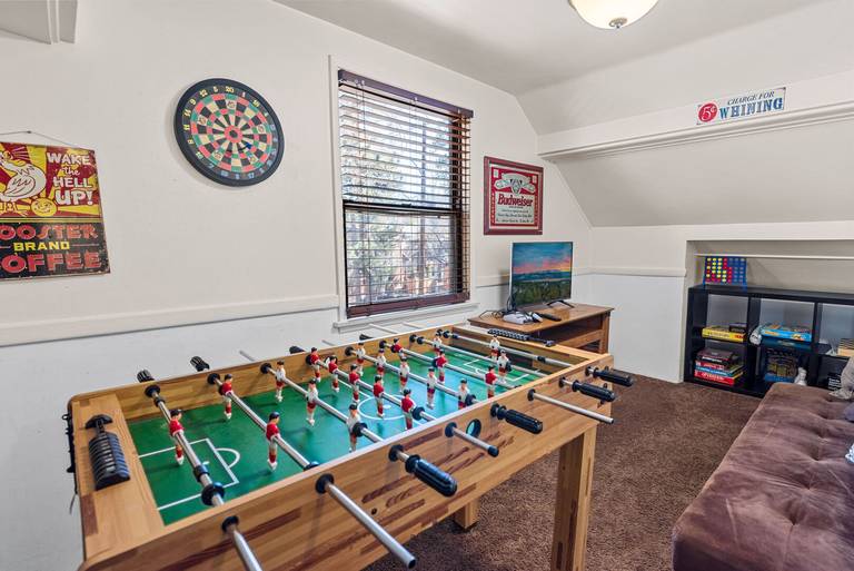 AMENITIES - Foosball table and super Nintendo. Board games include Cards Against Humanity Family Edition, Chutes and Ladders, and more. Smart TVs and streaming apps along with fast WiFi. Relax near the cozy wood burning fireplace. Laundry area with washer/dryer available.