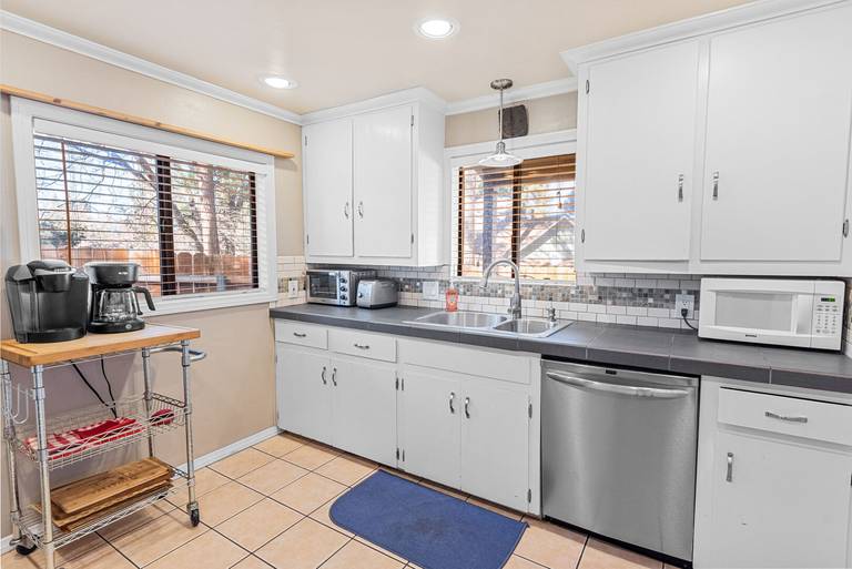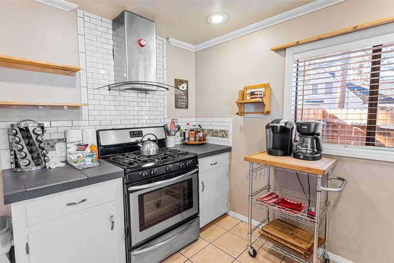KITCHEN - Stove/oven, refrigerator, microwave, blender, toaster, coffee maker, dishes, pots/pans, spices, and more.