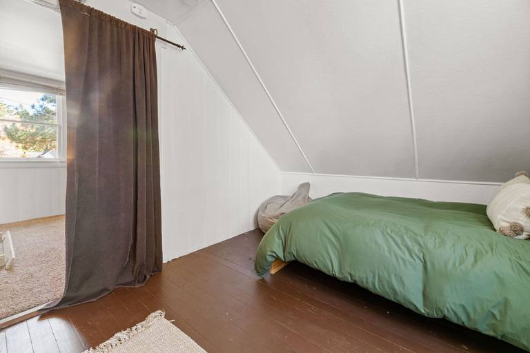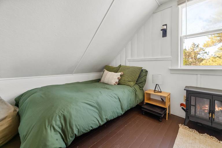ROOMS & BEDS - 1 Loft bedroom, 1 bath. Bedroom has 2 queen beds and electric fireplace. Extra blankets and pillows are available.