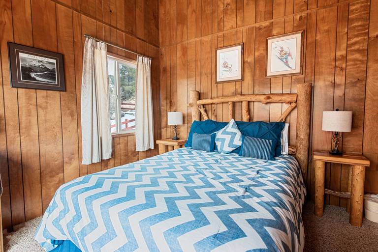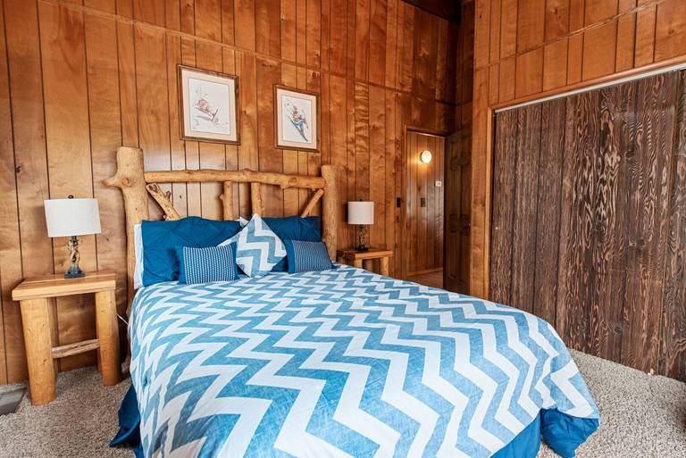 ROOMS & BEDS - 3 bedroom, 1 bath. Entry level/upstairs first bedroom has a queen bed and deck. Entry level/upstairs second bedroom has a queen bed. Downstairs third bedroom has a double/twin bunk bed. Living room has a sleeper sofa. Extra blankets and pillows are available.