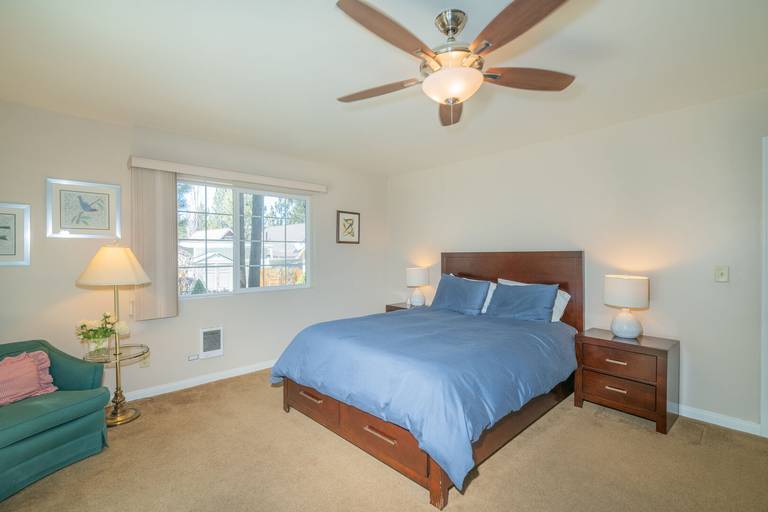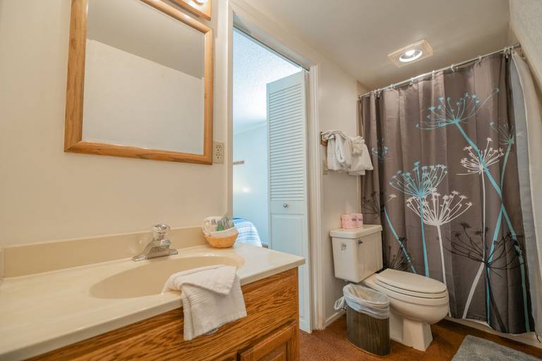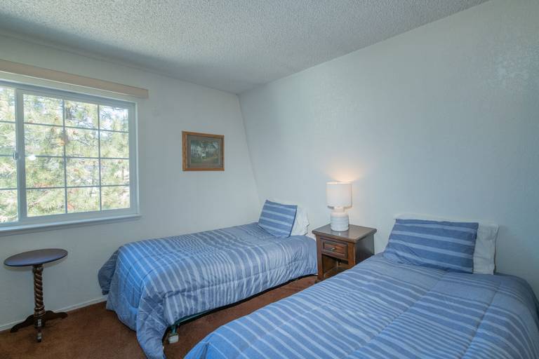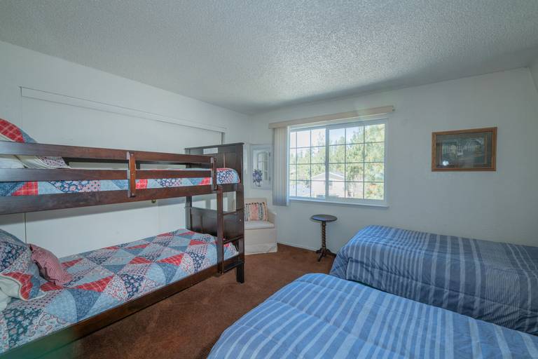 ROOMS & BEDS - 3 bedroom, 3 bath. Downstairs first bedroom has a queen bed. Upstairs second bedroom has a queen bed. Upstairs third bedroom has one twin bed and bunk bed. Extra blankets and pillows are available.