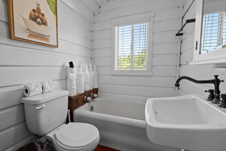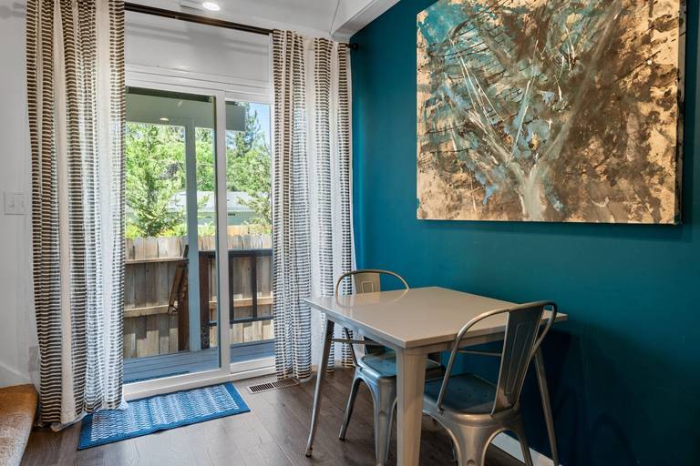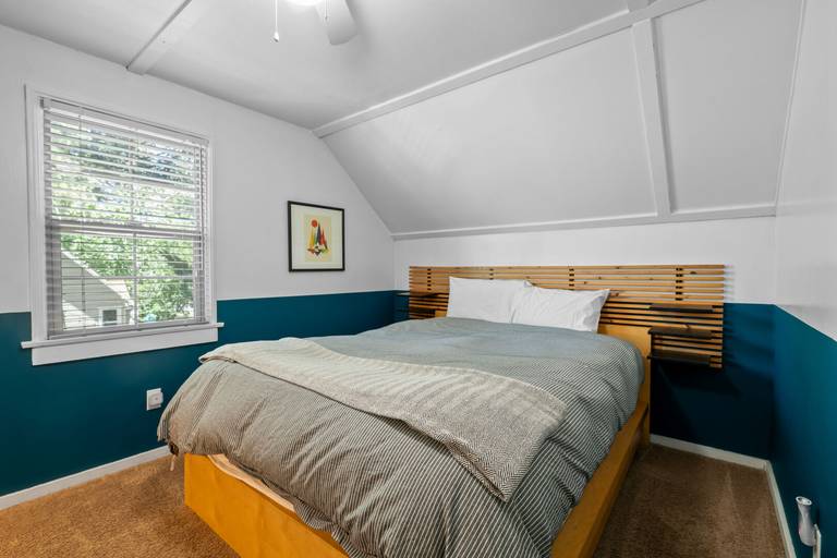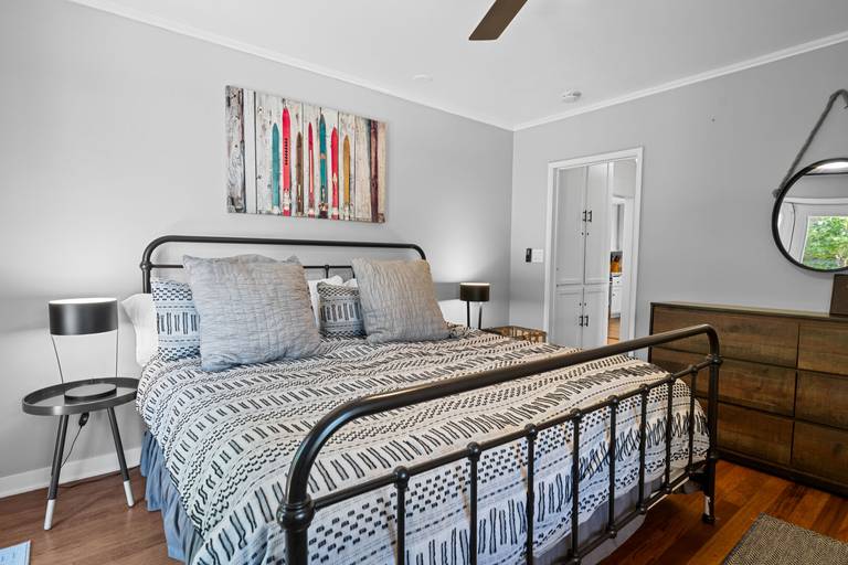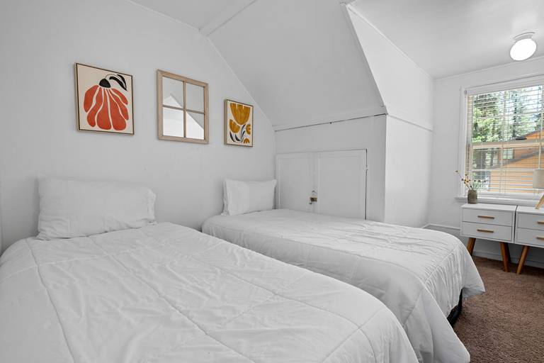 ROOMS & BEDS - 3 bedroom, 2 bath. Downstairs first bedroom has a king bed, and deck access. Upstairs second bedroom has a queen bed. Upstairs third bedroom has 2 twin beds. Extra blankets and pillows are available.