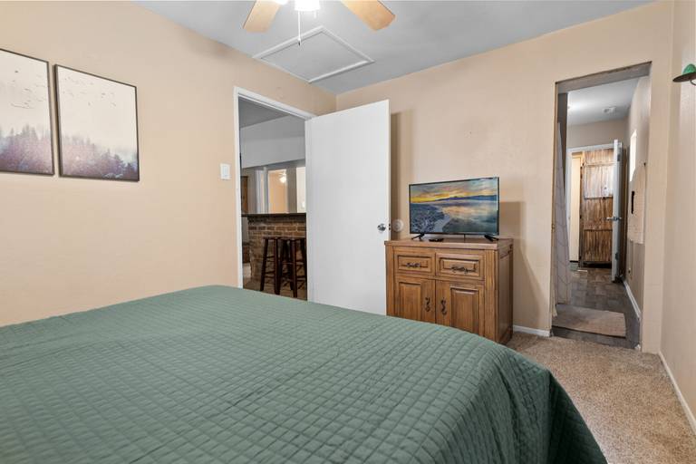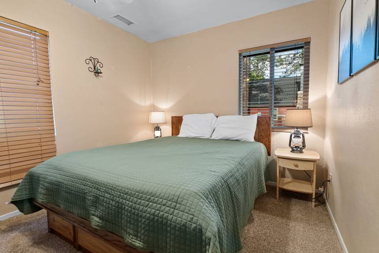 ROOMS & BEDS - 2 bedroom, 1 bath. First bedroom has a queen bed and TV. Second bedroom has two twin beds. Living room has a sleeper sofa. Extra blankets and pillows are available.