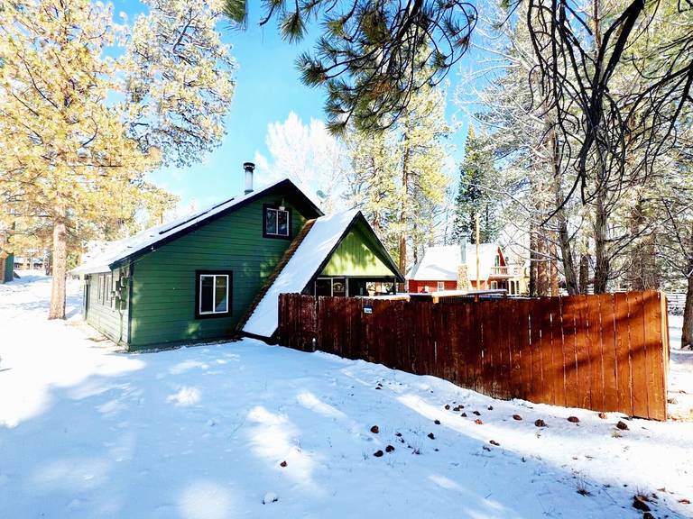 Snow covered Big Bear Cool Cabins Happy on the Lake [19]