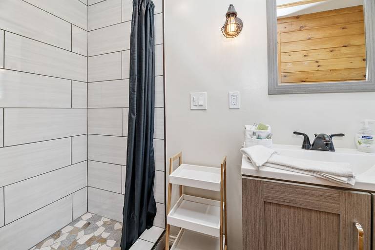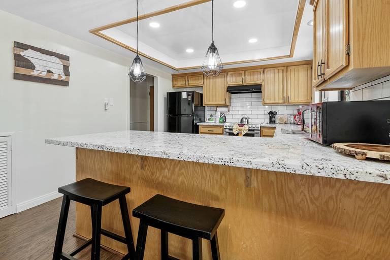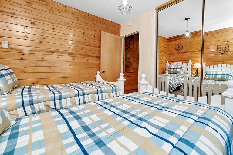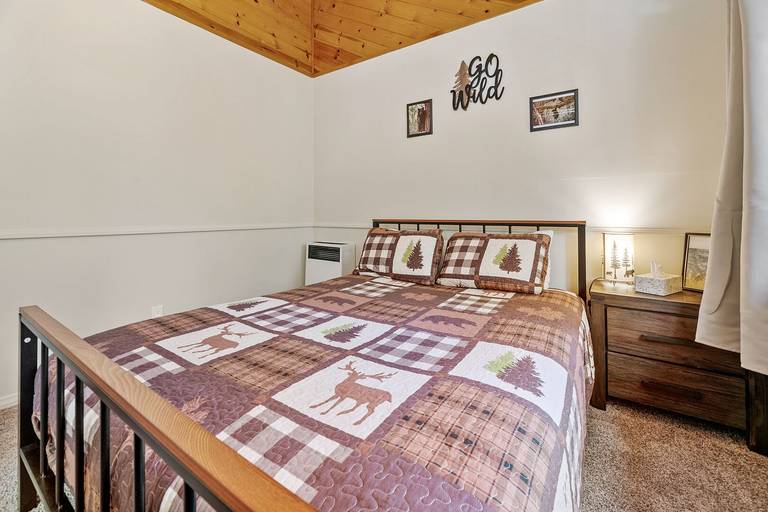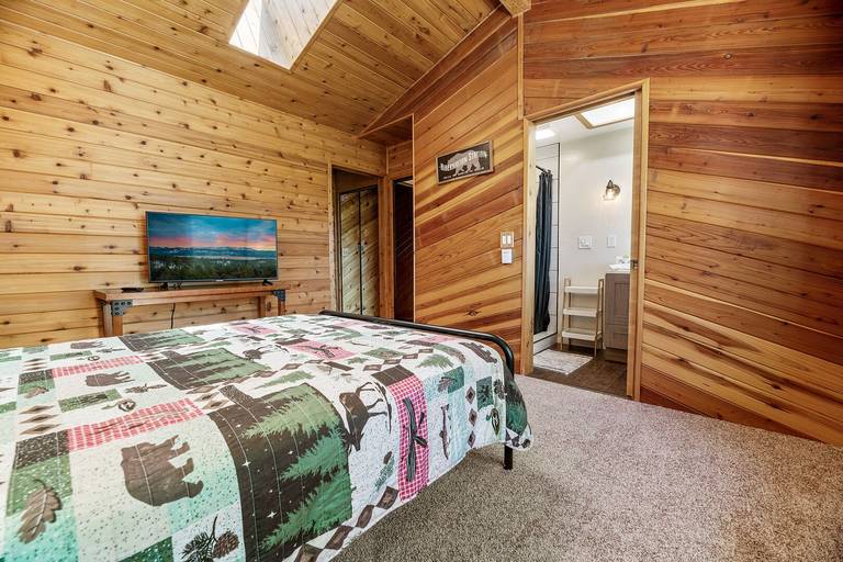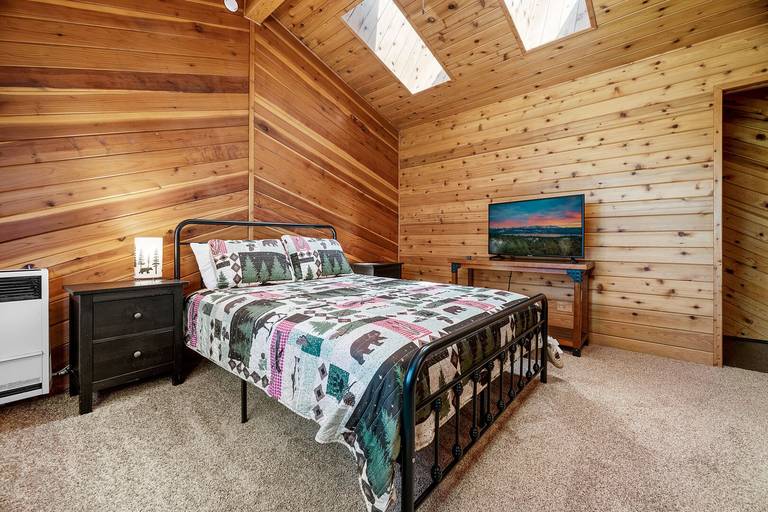 ROOMS & BEDS - 3 bedroom, 2 bath. Upstairs master suite has a queen bed, sitting area, walk-in closet, TV, and private bath. Downstairs second bedroom has a queen bed. Downstairs third bedroom has a 2 twin beds. Extra blankets and pillows are available.