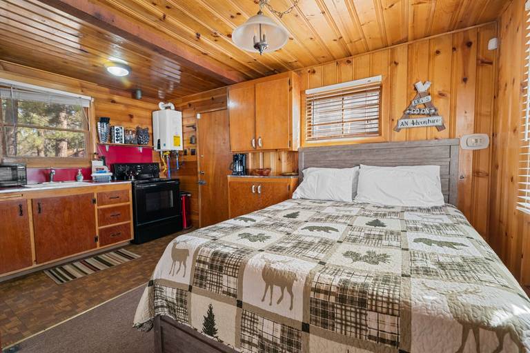 5 of 5We had a great time here. The cabin is close to the Village, about 1 mile away, and about a block away from Big Bear Blvd. Keep in mind this is more like a studio type layout. There's one big open space for everything, kitchen, living room area and bedroom. The only downside I can think of is the bed mattress was a bit stiff for my preference, other than that everything was great!