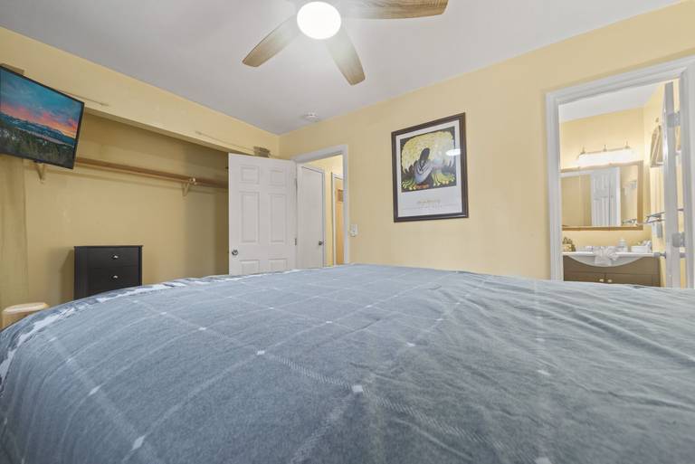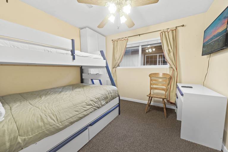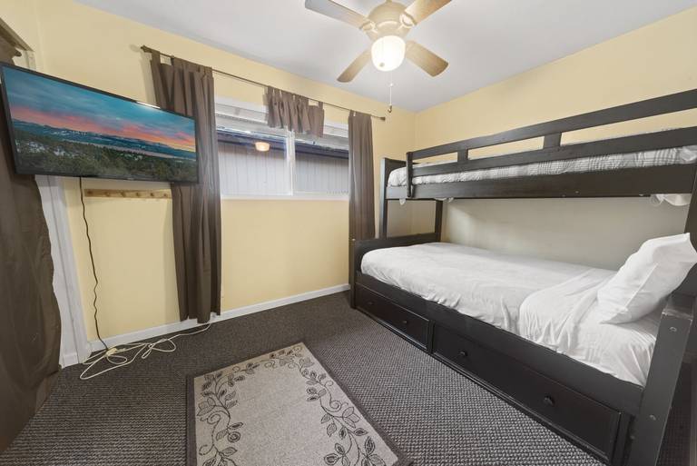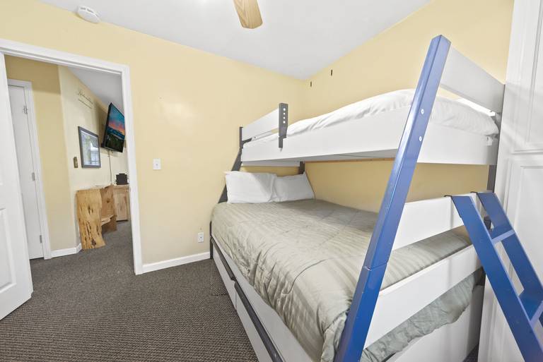 ROOMS & BEDS - 3 bedroom, 2 bath. Master bedroom has a queen bed, bathroom, and TV. Second bedroom has a double/twin bunk bed, and TV. Third bedroom has a double/twin bunk bed, and TV. Extra blankets and pillows are available.