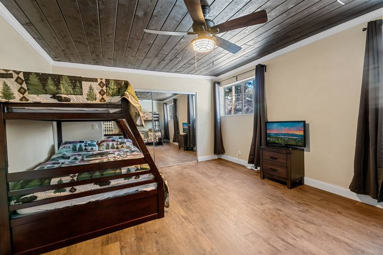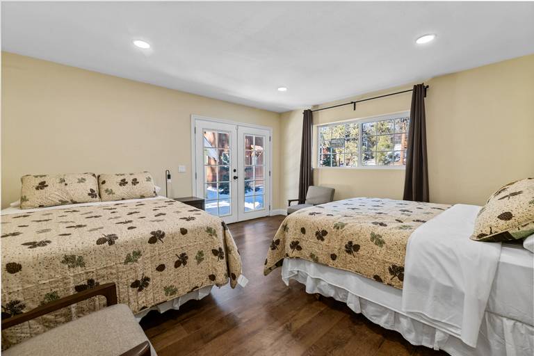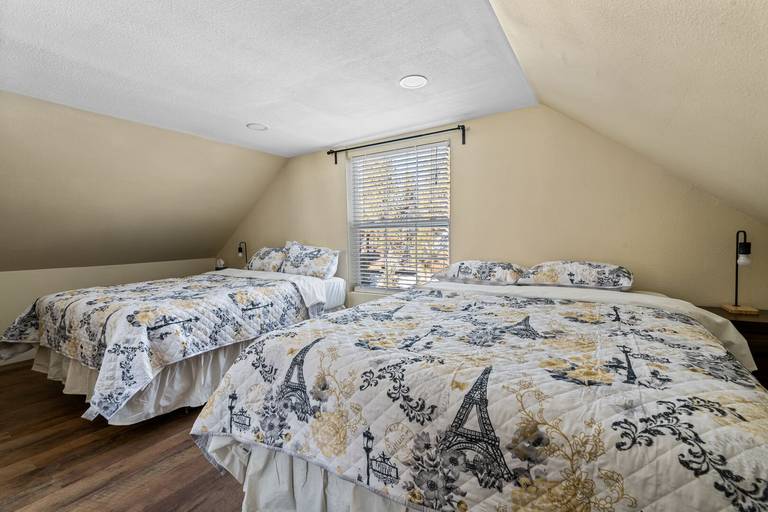 ROOMS & BEDS - 4 bedroom, 3 bath. Downstairs master bedroom 2 queen beds, private bath, and deck access. Upstairs second bedroom has 2 queen beds. Upstairs third bedroom has a double bed with a twin trundle bed. Downstairs fourth bedroom has a 2 sets double/twin bunk beds. Extra blankets and pillows are available.