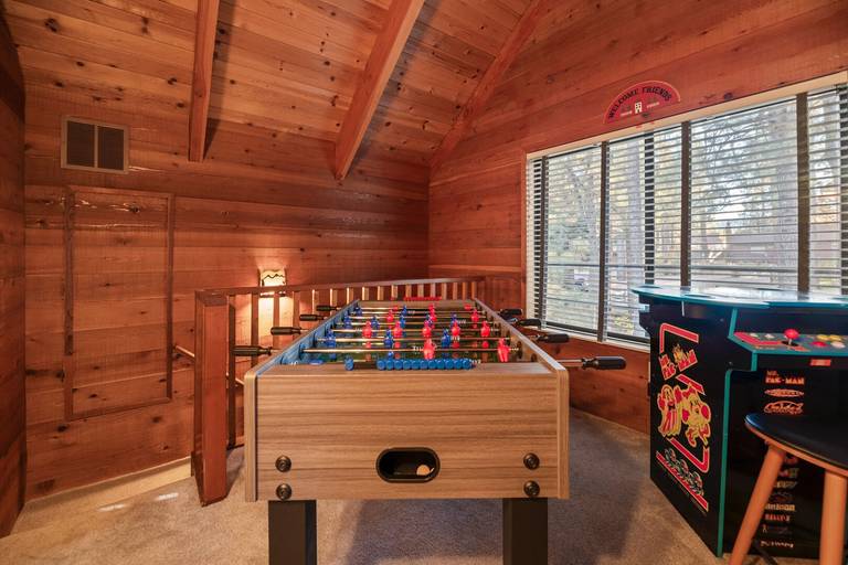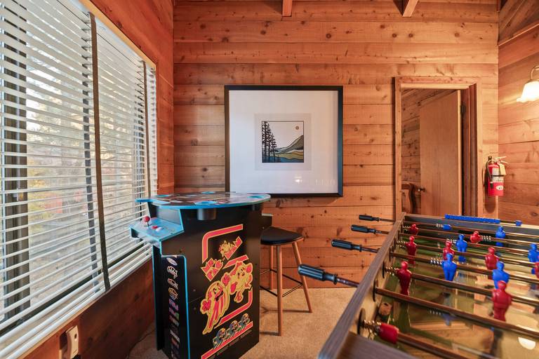 AMENITIES - Retro-style video game system, board games and card games. Smart TVs, streaming apps along with fast WiFi. Relax near the cozy wood/gas fireplace.