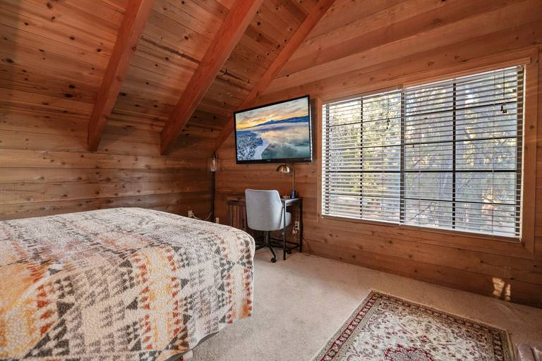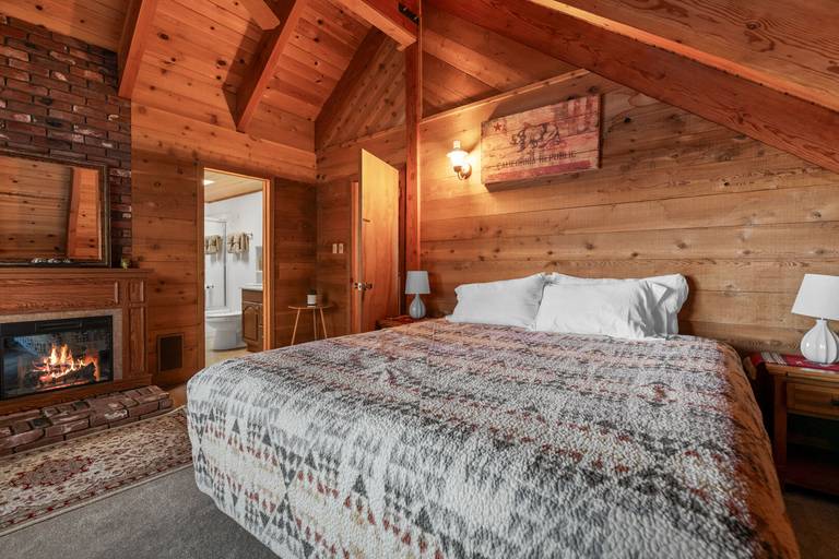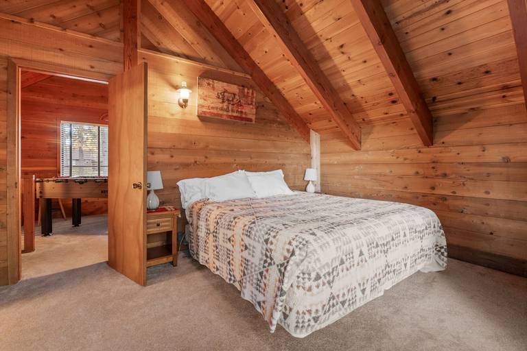 ROOMS & BEDS - 3 bedroom plus loft, 2 bath. Upstairs master bedroom has a king bed, electric fireplace, and private bath. Upstairs second bedroom has 2 twin beds. Downstairs third bedroom has a double bed. Upstairs loft has a futon and TV. Extra blankets and pillows are available.