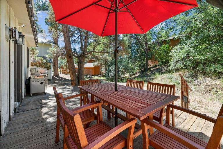 OUTDOORS - Deck with gas barbecue and patio furniture.