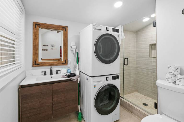 AMENITIES - Smart TV, streaming apps along with fast WiFi, board games, and card games. Laundry in bathroom with stackable full-size washer/dryer.