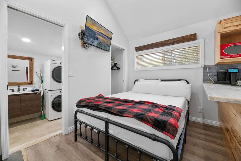 LIVINGROOM - Studio, 1 bath. Queen bed, smart TV, and private bath. Extra blankets and pillows are available.