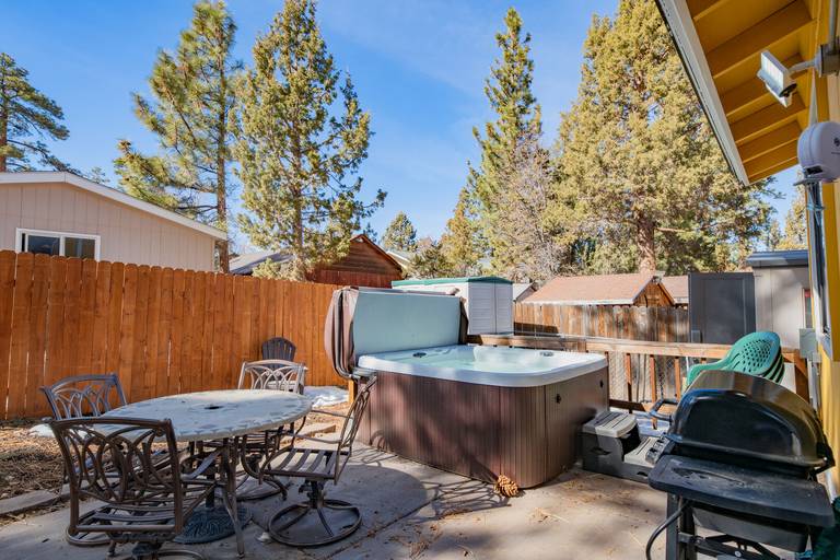 OUTDOORS - Hot tub, outdoor furniture, gas barbecue, and gas fire pit. Enjoy a spacious front deck and fully fenced back yard perfect for your furry friend to run around in! The owner has also provided a shed with bikes, snow sleds, horseshoes, and cornhole. We ask that you kindly put away these items when not in use.