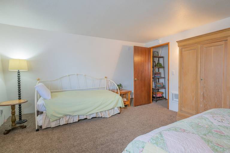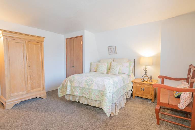 ROOMS & BEDS - 2 bedroom, 1.5 bath. Upstairs master bedroom has a queen bed. Upstairs second bedroom has a double bed and trundle bed. Living room has a sleeper sofa. Extra blankets and pillows are available.